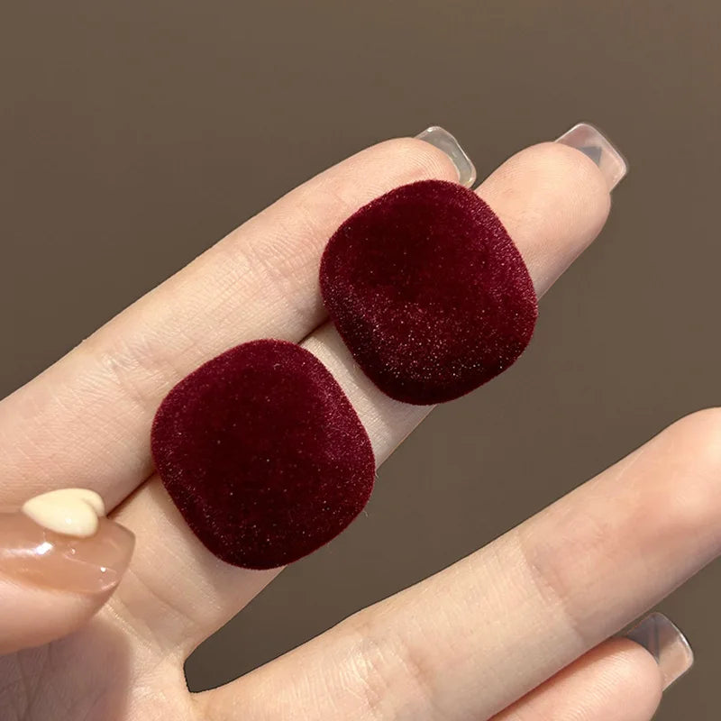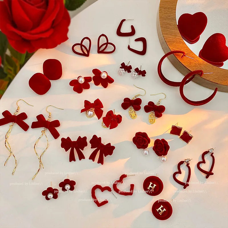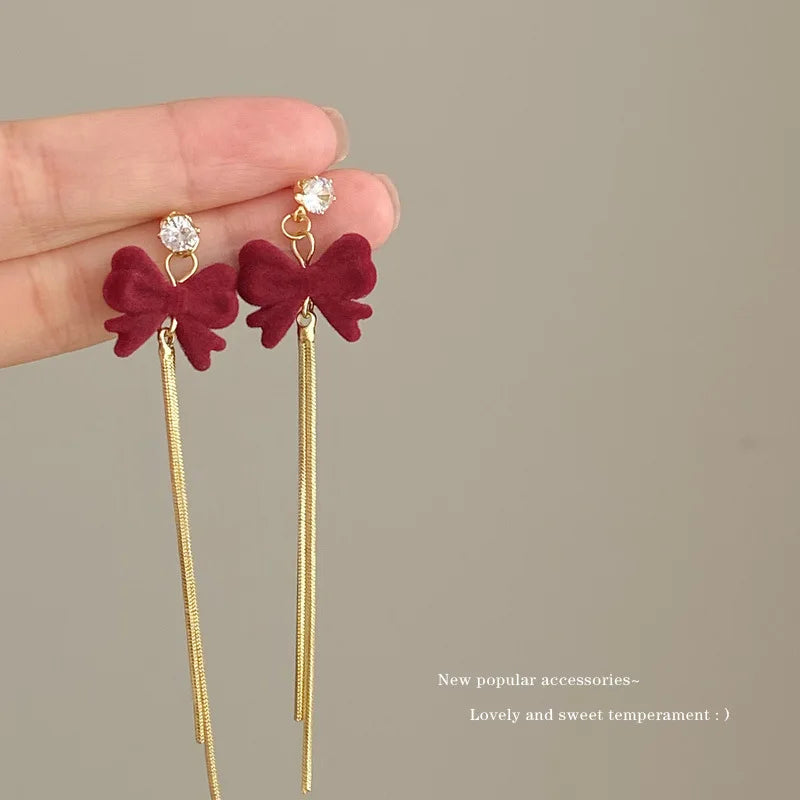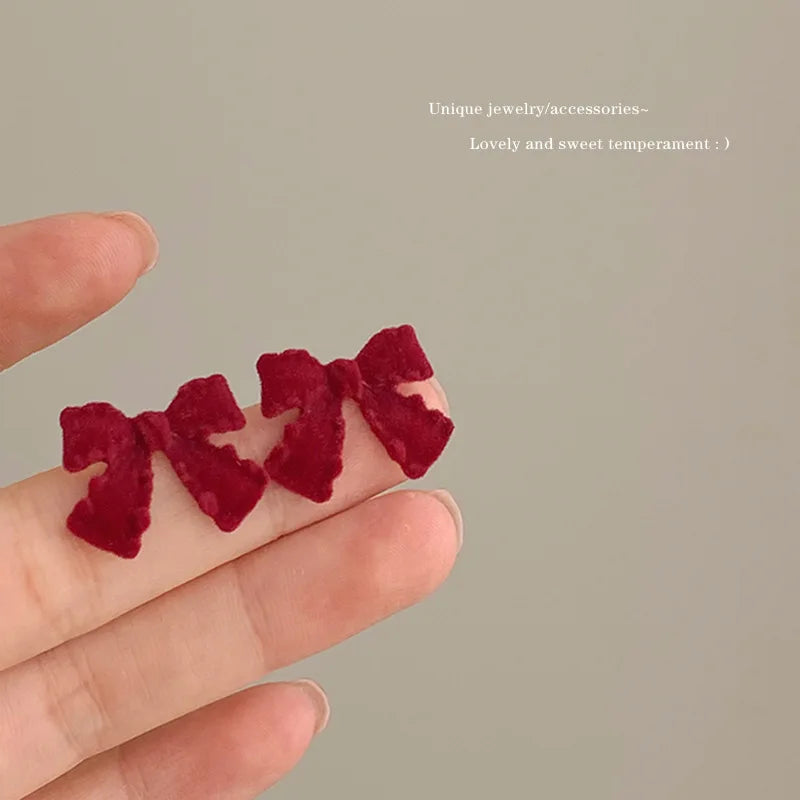 KADRUFI Vintage Red New Christmas Flocking Earrings for Women Bow-knot C-Shape Pearl Rhinestone Drop Earring Jewelry Party Gift